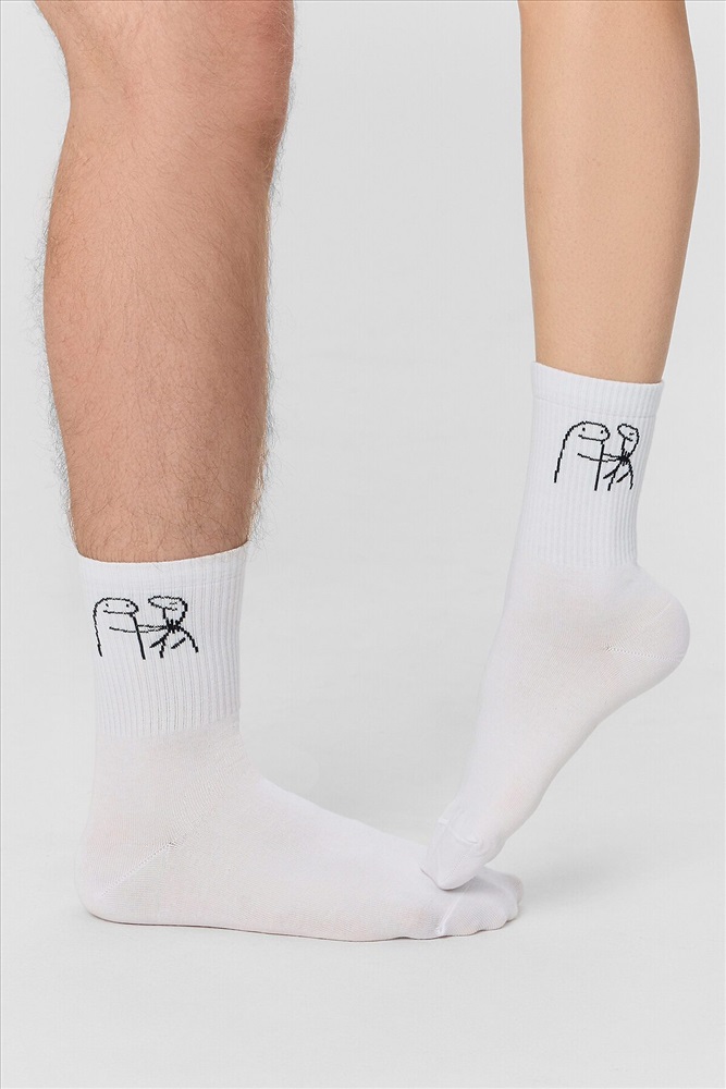 рис.3229 Носок высокий с плотным бортом и рисунком в виде мема.