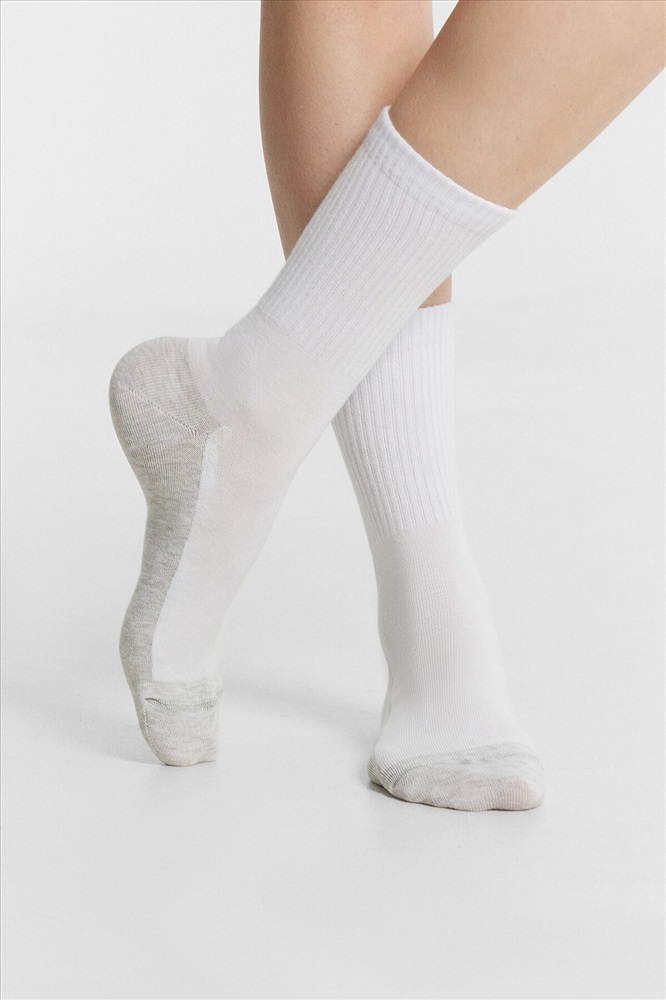рис.3077 Женский носок с высоким плотным бортом и меланжевым следом.