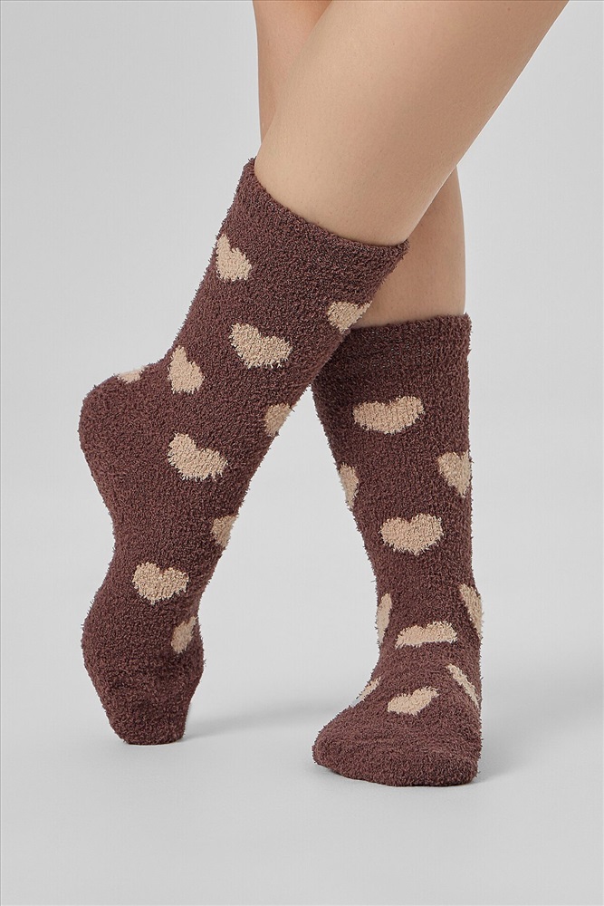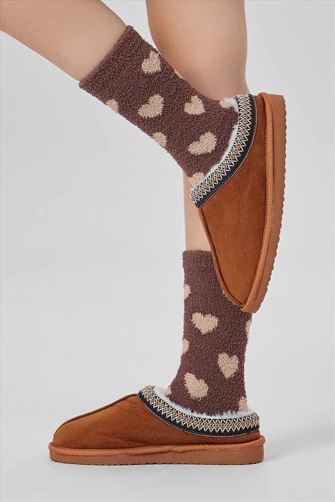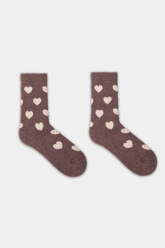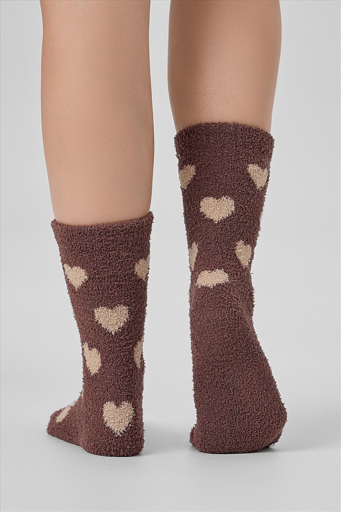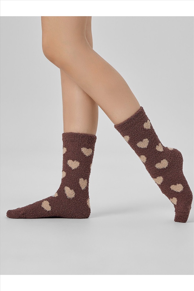 рис.3360 Женские, высокие носки, из каракулевой пряжи с рисунком в виде крупных сердец.