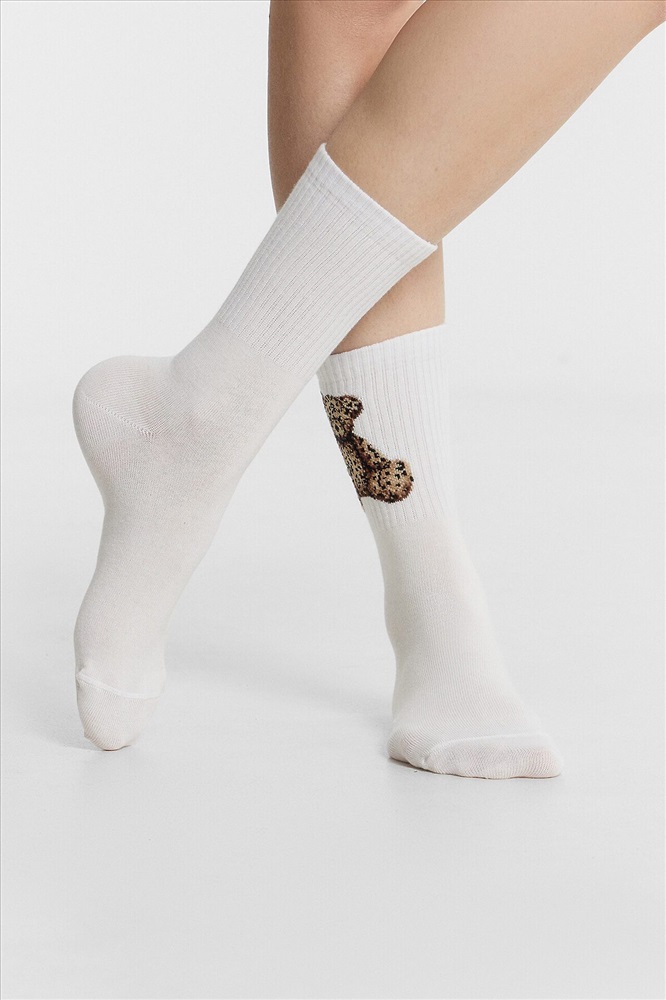 Высокие классические носки женские с плотным бортом и рисунком в виде мишки. Выполнены из высококачественного гребенного хлопка - тонкого, прочного и эластичного. Натуральные волокна отлично пропускают воздух и впитывают влагу, обеспечивают ощущение комфорта в течение дня. Благодаря небольшому количеству эластана в составе, носочки хорошо облегают и сохраняют форму, практичны и долговечны. Пятка и мысок дополнительно усилены для защиты от протирания при активном движении. Резинка мягко, но надежно удерживает носки, не передавливая ногу и не оставляя на коже следов. Отличный вариант для круглогодичного использования. Мягкие и комфортные. Порадуйте себя и своих близких прекрасными носочками от Mark Formelle!