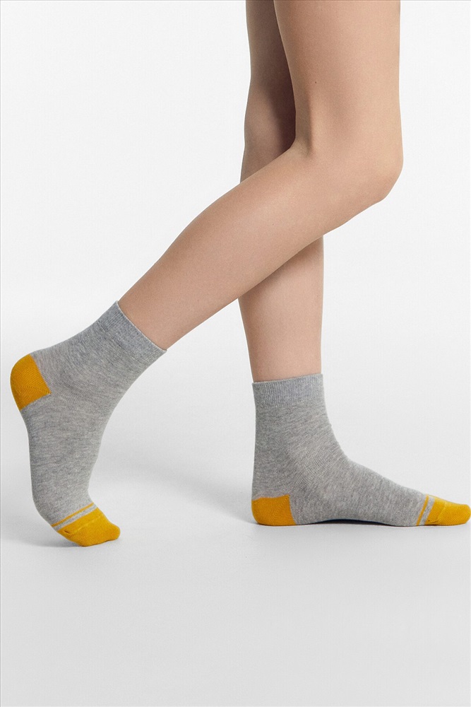 Детские носки из высококачественного хлопка с высоким плотным бортом и рисунком в виде полоски в цвет пятки и мыска.. Натуральные волокна отлично пропускают воздух и впитывают влагу, дарят ощущение комфорта в течение дня. Благодаря небольшому количеству эластана в составе, высокие детские носки удобно сидят и не сползают, хорошо тянутся и легко надеваются. Пятка и мысок дополнительно укреплены для защиты от протирания. Резинка мягко, но надежно удерживает носки, не оставляя на коже следов. В ассортименте Mark Formelle можно выбрать самые разнообразные дизайны и расцветки: однотонные зеленые, желтые, синие или серые детские носки подойдут и для мальчика, и для девочек, найдутся модели в полоску, с оригинальными авторскими рисунками, орнаментами, а также базовые носки белые и черные детские. Маленьким модникам точно понравятся!