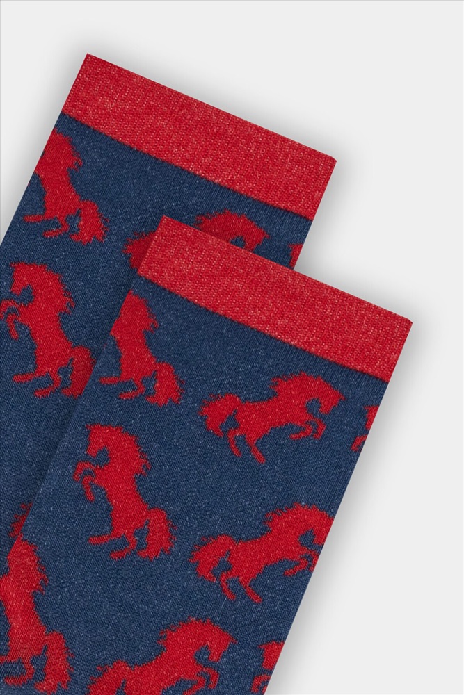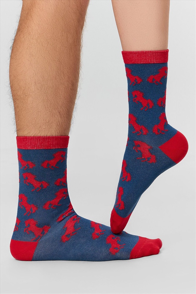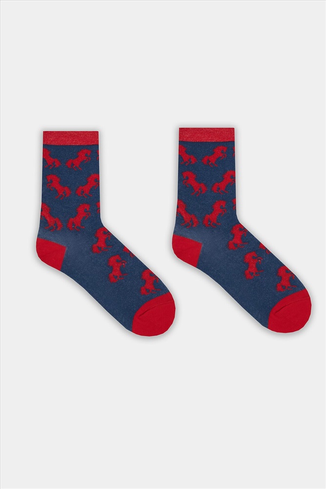 ID товара: 1225533 Состав: 80% Хлопок; 18% Полиамид; 2% Эластан Сезон: Демисезон Основная ткань: Хлопок Вид носков/гольф: Фантазийные Страна бренда: Беларусь Страна производства: Беларусь Рис.3450 Носки унисекс, классические с рисунком в виде лошадей. Комментарии к товару