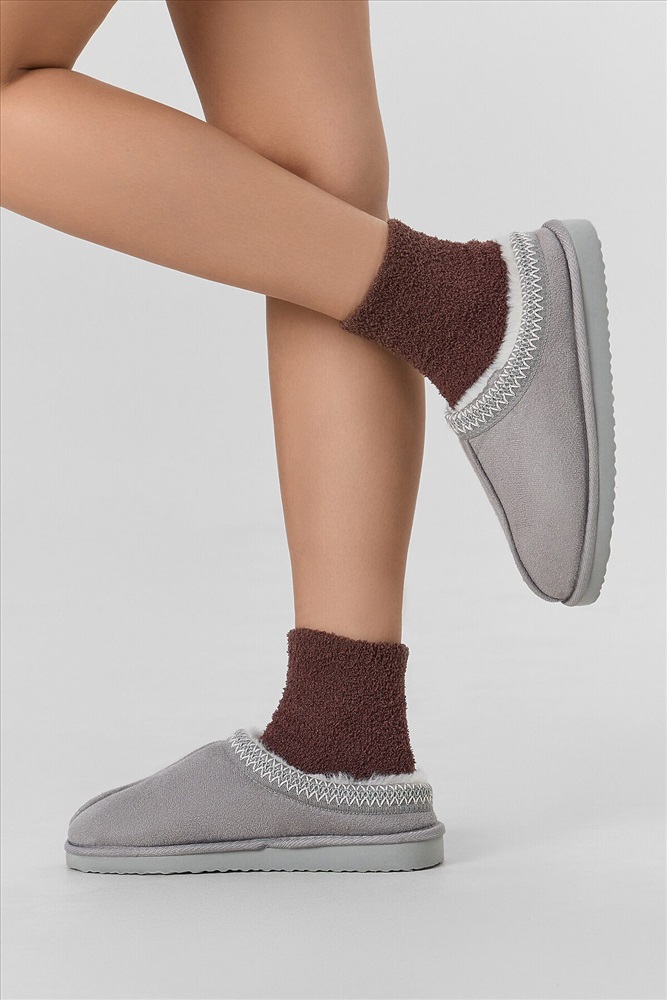 ID товара: 1226007 Состав: 91% Полиэстер; 8% Полиамид; 1% Эластан Сезон: Осень/Зима Основная ткань: Полиэстер Вид носков/гольф: Фантазийные Страна бренда: Беларусь Страна производства: Беларусь рис.3361 Укороченный махровый женский носок из пушистой пряжи. Комментарии к товару