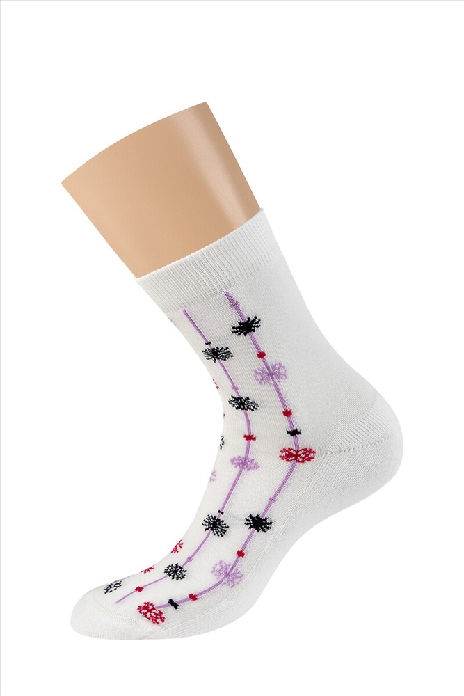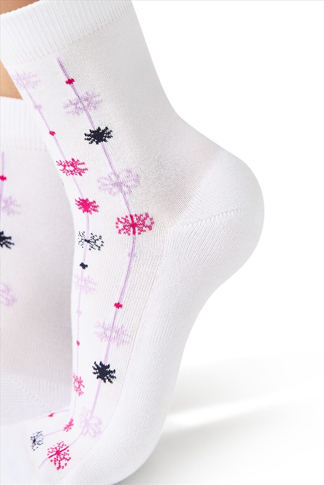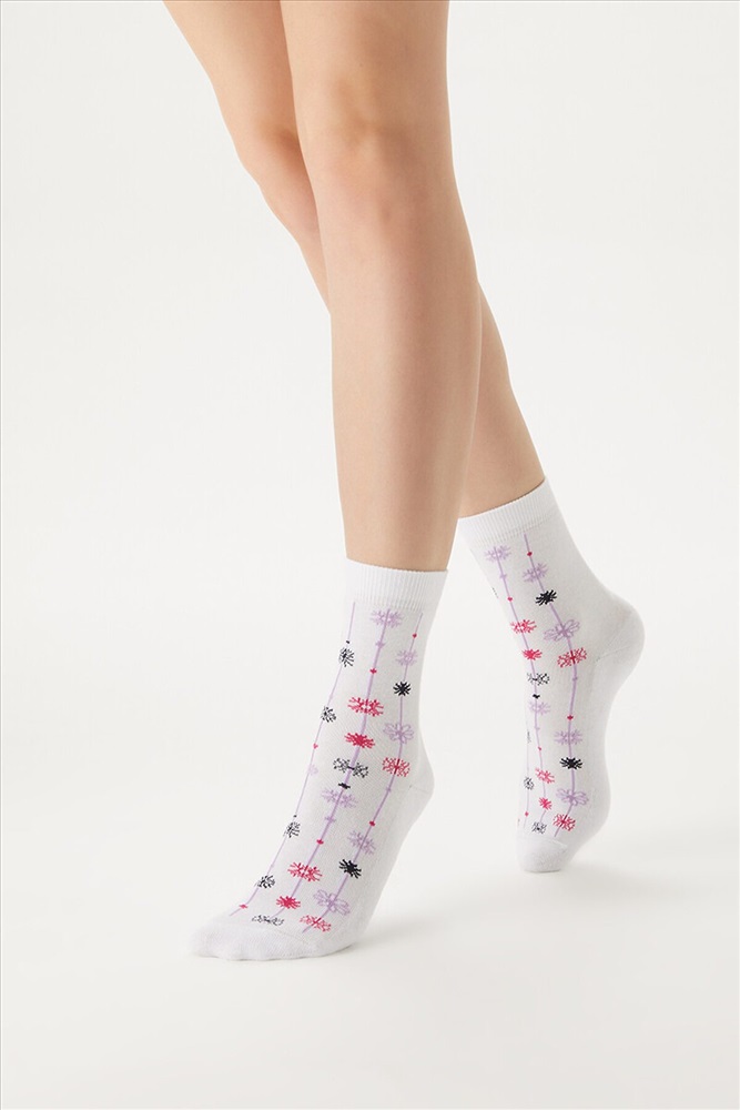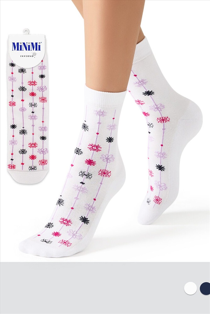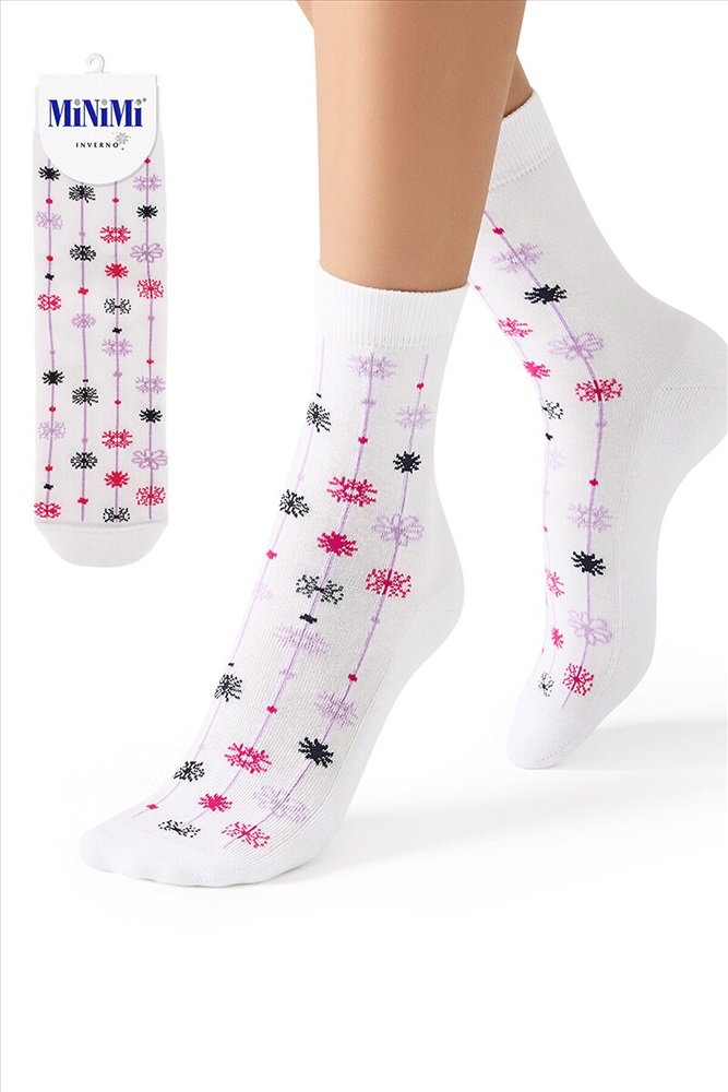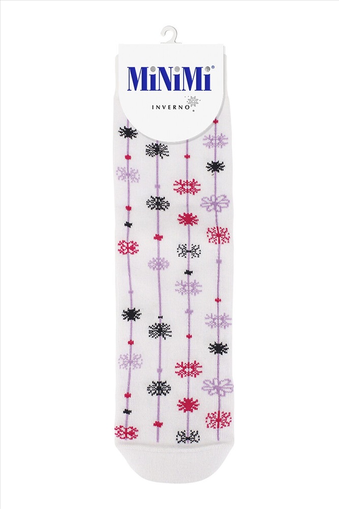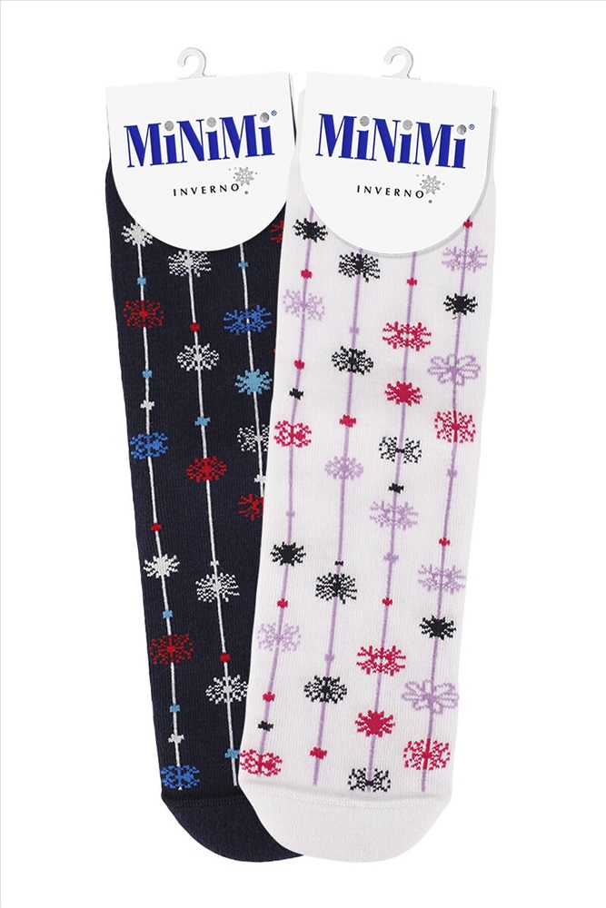 Женские зимние носки MiNiMi с рисунком снежинки. Благодаря нежной и бархатистой текстуре, носки приятно ощущаются на ноге, широкая удобная резинка превосходно фиксирует, а мягкий и уютный плюш на стопе отлично сохраняет тепло и создает дополнительный комфорт. Трендовые носки с праздничным рисунком в виде разноцветных снежинок не только поднимут настроение, но и станут отличным и запоминающимся подарком для себя, друзей и родственников в преддверии грядущего Нового года.