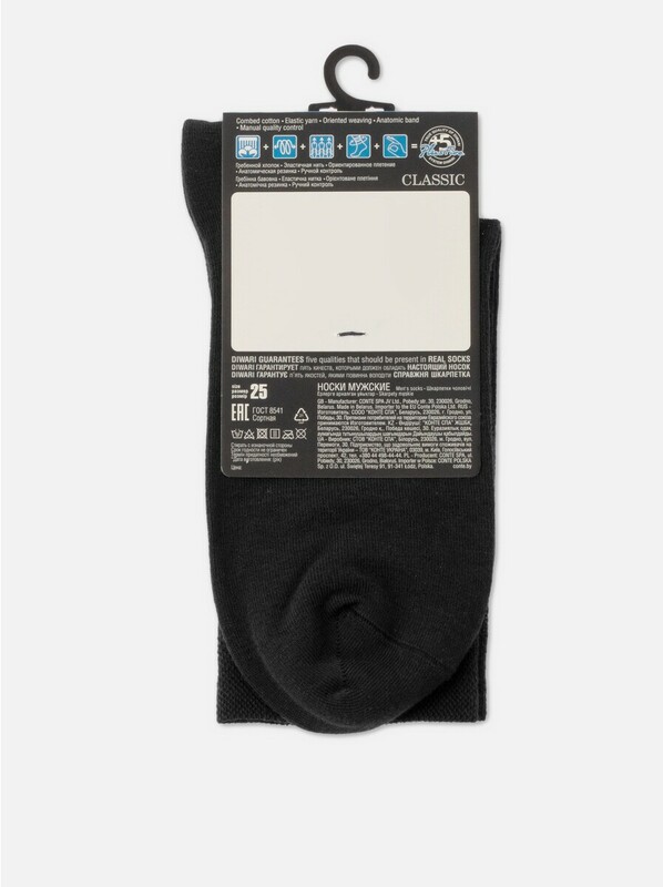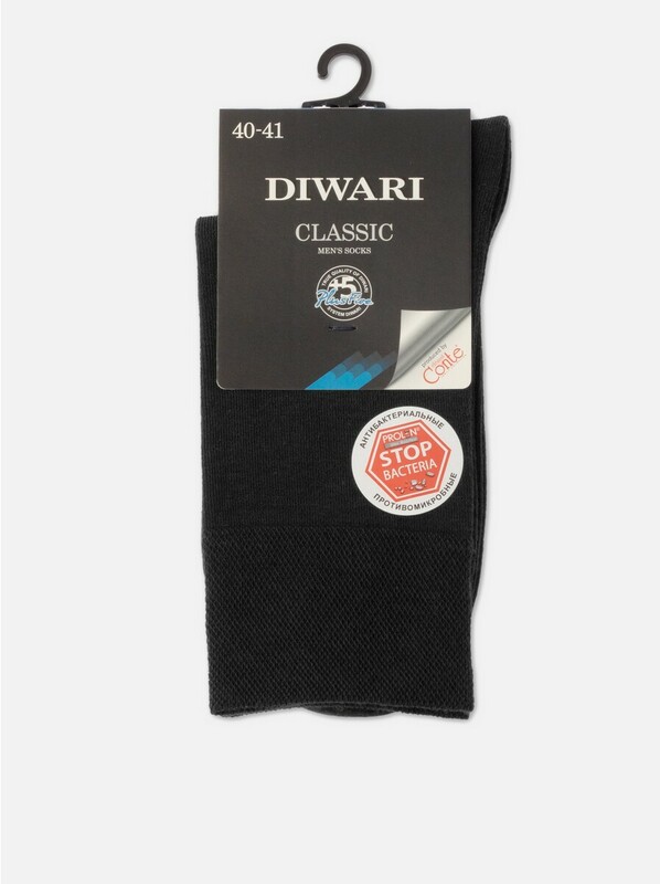 Классические всесезонные эластичные мужские носки из хлопка в сочетании с полипропиленом с противомикробной обработкой Prolen Siltex, препятствующей размножению бактерий, с двойной анатомической резинкой, однотонные.