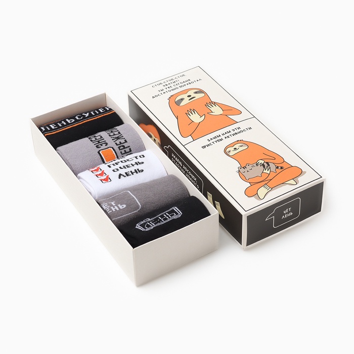 Производитель: KAFTAN Габариты: 29 x 12 x 7 Страна: Россия В боксе: 30 набор Состав: Полиамид 15%, хлопок 80%, эластан 5% Материалы: полиамид, хлопок, эластан Фасовка: по 1 набор Сертификат: ЕАС Цвет: Разноцветный Для кого: Для мужчины Назначение: Повседневная В наборе, шт.: 5 Длина стопы, см: 27, 29 Размер обуви: 41, 42, 43, 44 Сезон: Демисезон, Лето, Всесезонный Особенности: Классические Тематика: Надписи, цифры, буквы Вид упаковки: Подарочная коробка Декоративные элементы: Без элементов Рекомендации по уходу: Бережный режим глажки, Стирка при 30 °С, Деликатный режим отжима, Не отбеливать Основной состав: Хлопок Вид: С рисунком