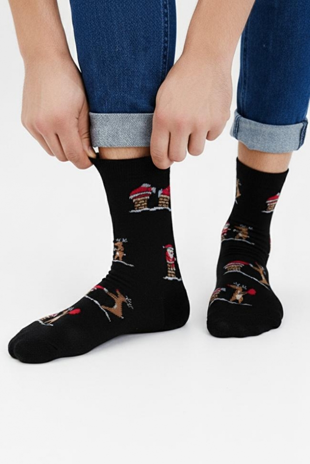 1 пара мужских носков с новогодней тематикой. Отличный подарок на торжество коллеге, любимому человеку или другу.