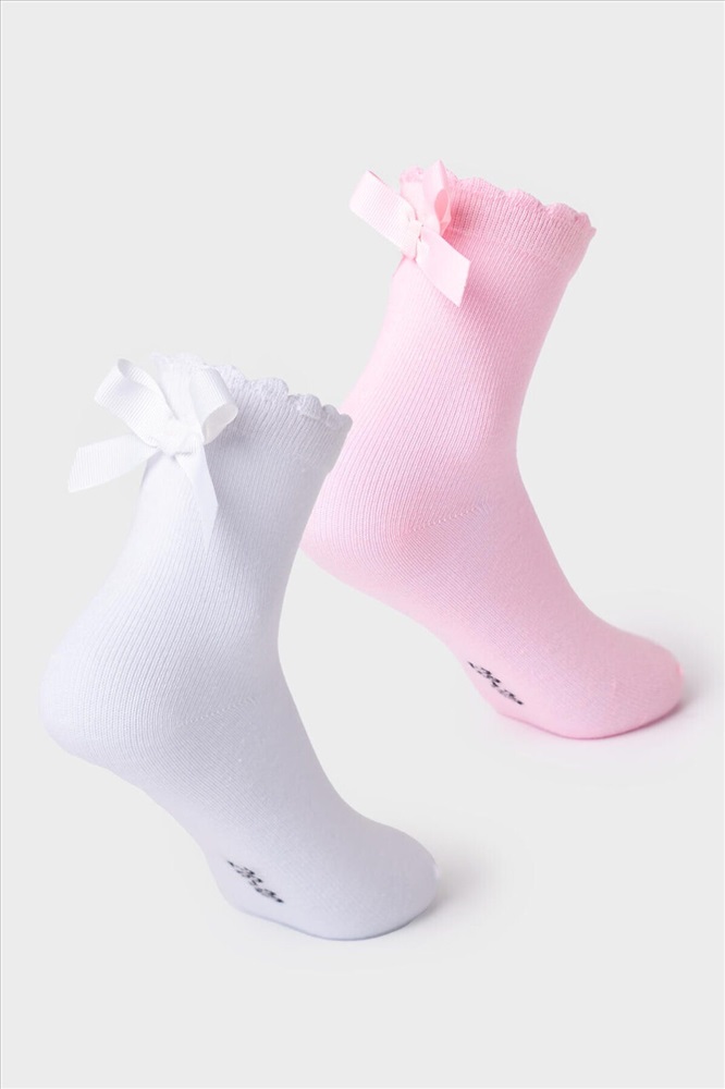ID товара: 1239928 Состав: 75% хлопок, 20% нейлон, 5% эластан Сезон: Весна/Лето Набор из двух пар детских носков для девочки. В комплект входят носки двух расцветок: одна пара выполнена в нежном розовом цвете, вторая — белая с акцентами. Декорированы бантами. Носки выполнены из мягкого хлопкового трикотажа, хорошо тянутся и комфортно сидят на ноге благодаря эластичной резинке в верхней части. Усиленные мысок и пятка. Комментарии к товару