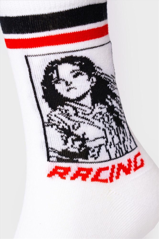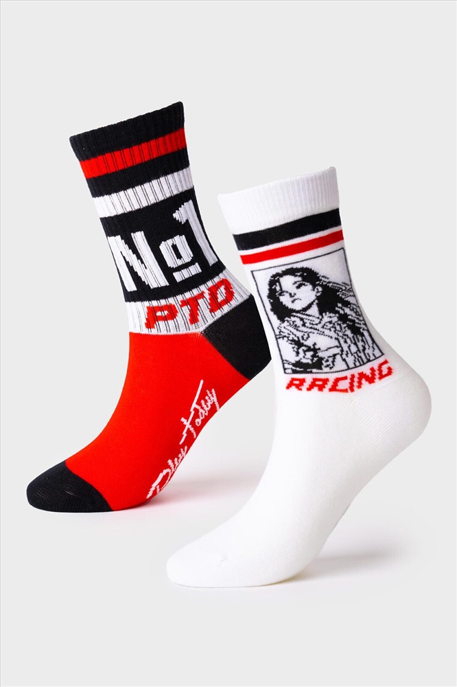 Набор из двух пар носков для девочки подростка. Дизайн выполнен в гоночной тематике. Носки выполнены из мягкого хлопкового трикотажа, хорошо тянутся и комфортно сидят на ноге благодаря эластичной резинке в верхней части. Усиленные мысок и пятка.