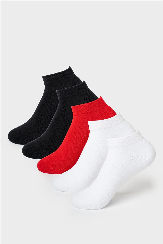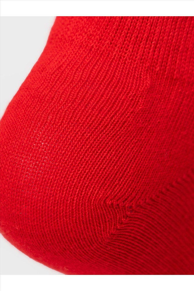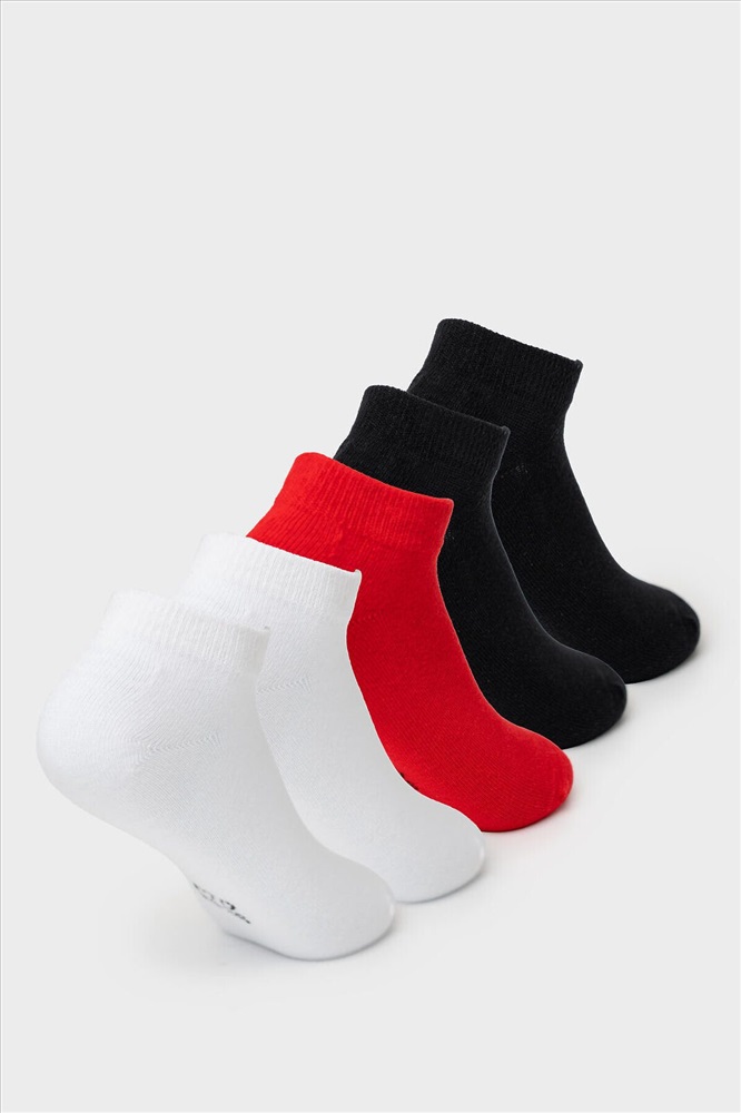 Набор носков для девочки подростка. В комплект входит 5 пар укороченных носков. Носки выполнены в разных однотонных цветах: красный, белый и черный. У каждой пары на стопе сбоку размещена жаккардовая надпись с логотипом и указанием размера. На пятке нанесён силиконовый принт для лучшей фиксации на ноге. Верх оформлен эластичной резинкой. Мысок и пятка имеют анатомическую форму.
