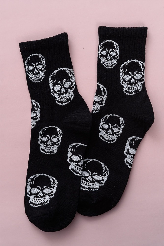ID товара: 1225356 Состав: 80% Хлопок, 18% Полиамид, 2% Эластан Сезон: Демисезон Основная ткань: Хлопок Вид носков/гольф: Фантазийные Вид ткани: Чулочно-носочный трикотаж Страна бренда: Россия Страна производства: Россия Женские носки с изображением черепов. Широкая резинка по всей верхней части носка. Комментарии к товару