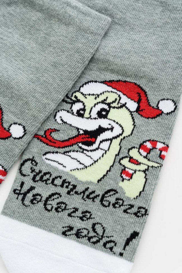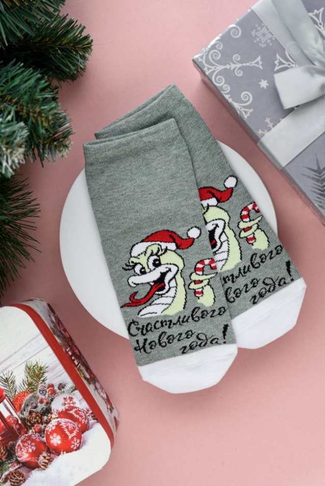 Оригинальные женские новогодние носки. В комплекте 1 пара. На основной части носка изображение символа будущего года Змеи.