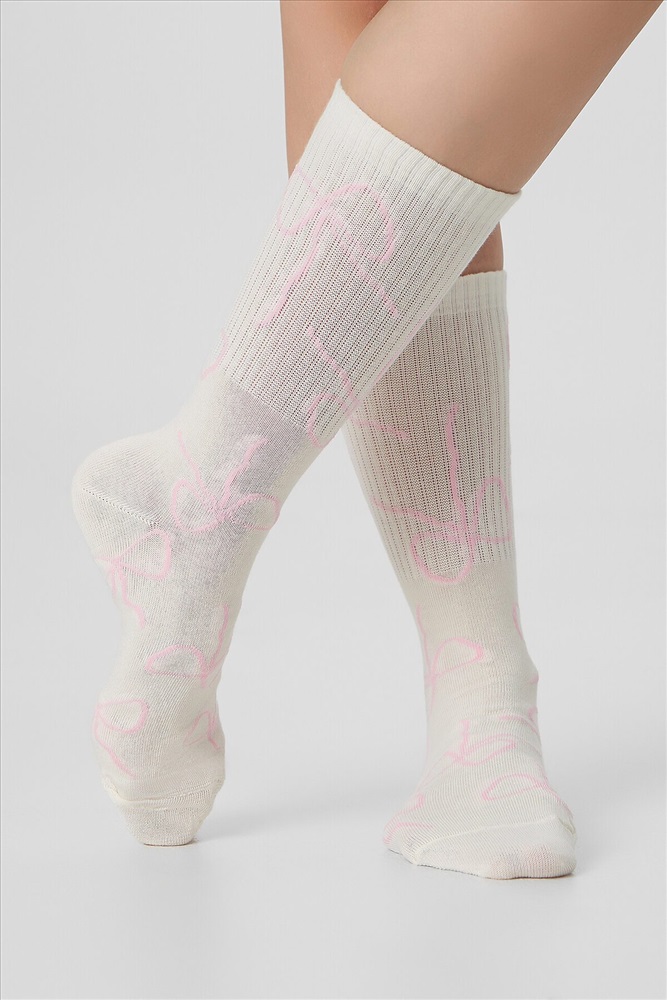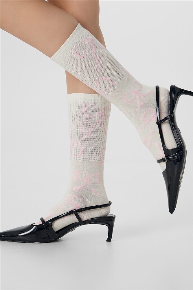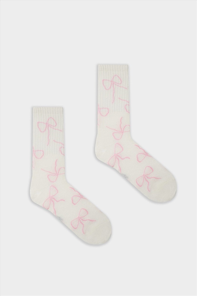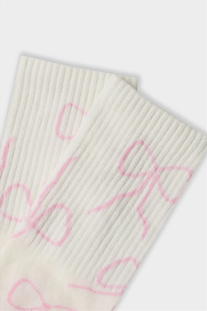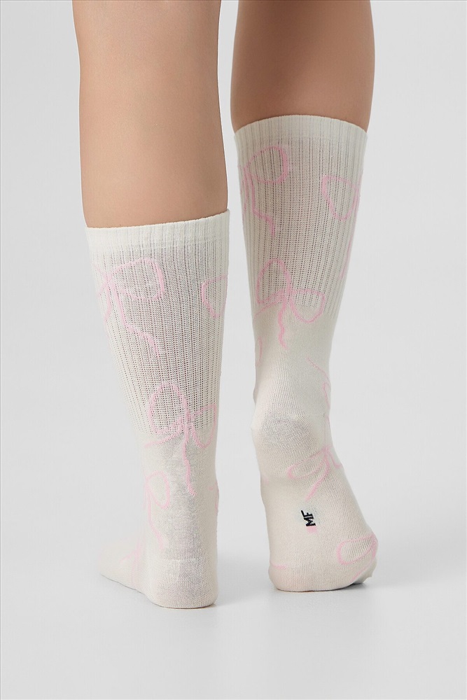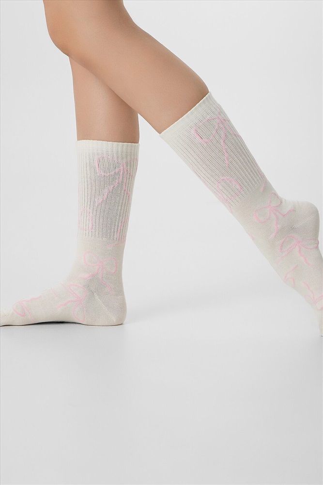 рис.3121 Женские носки с высоким плотным бортом и рисунком в виде контурных бантиков по всему изделию.