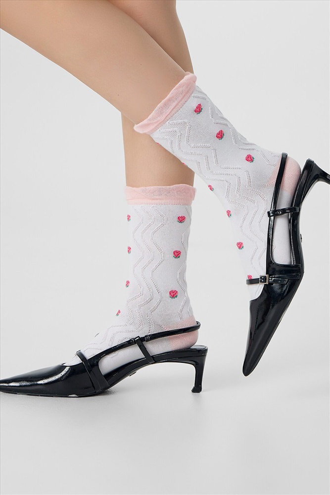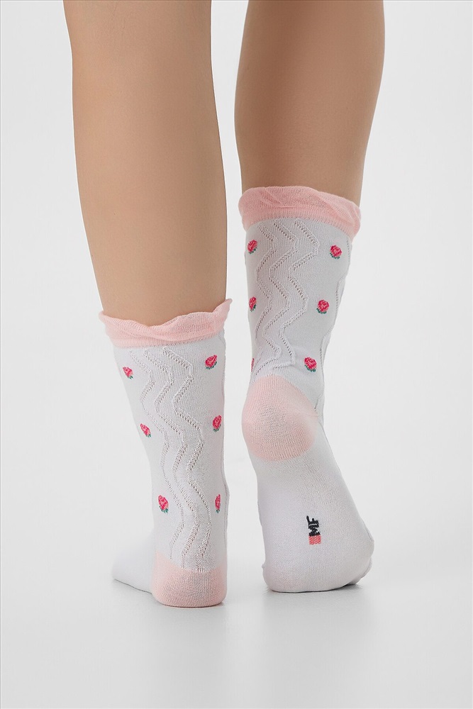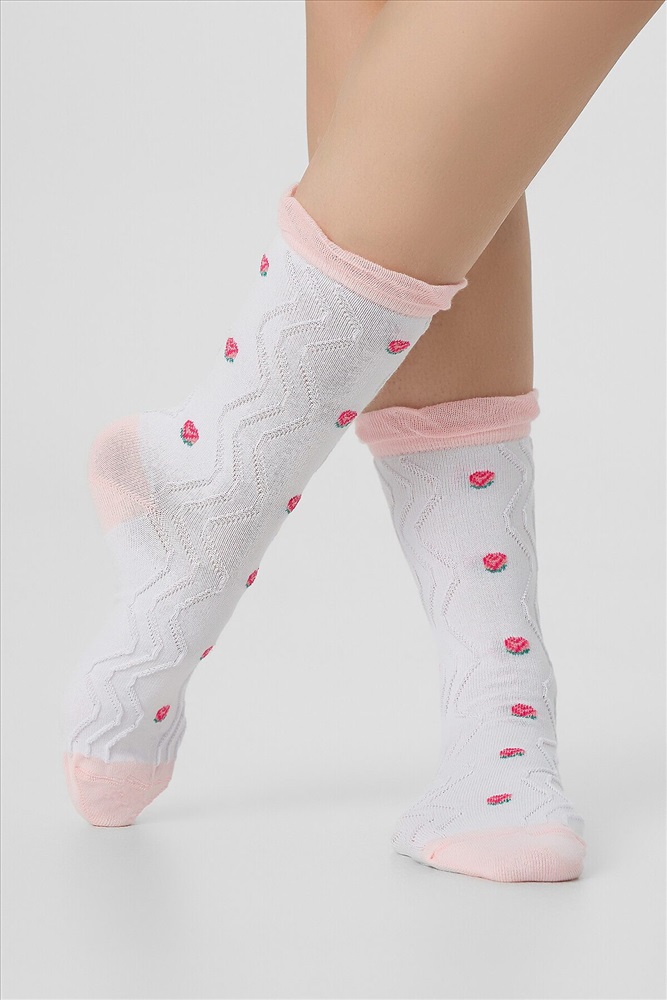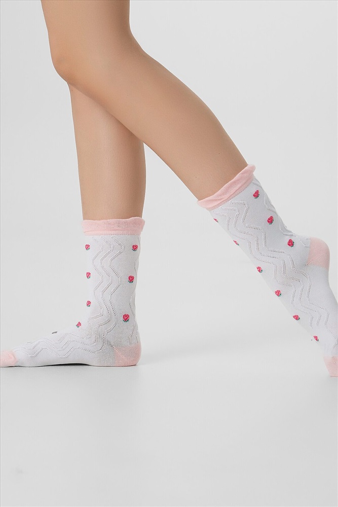 ID товара: 1230709 Состав: 76% хлопок; 22% ПА; 2% эластан Сезон: Демисезон Рисунок: Фрукты Вид носков/гольф: Фантазийные Страна бренда: Беларусь Страна производства: Китай рис.3116 Женские, классические носки с объёмным продольным рисунком и розочкой лампасе. Комментарии к товару