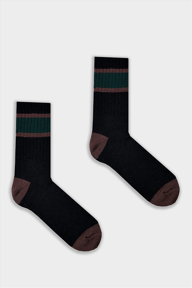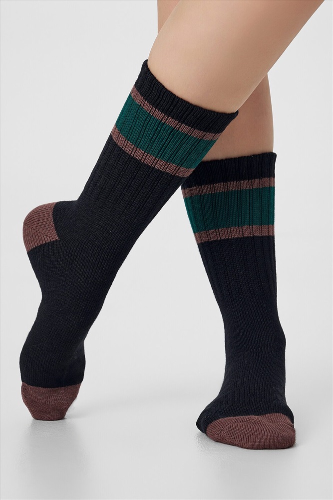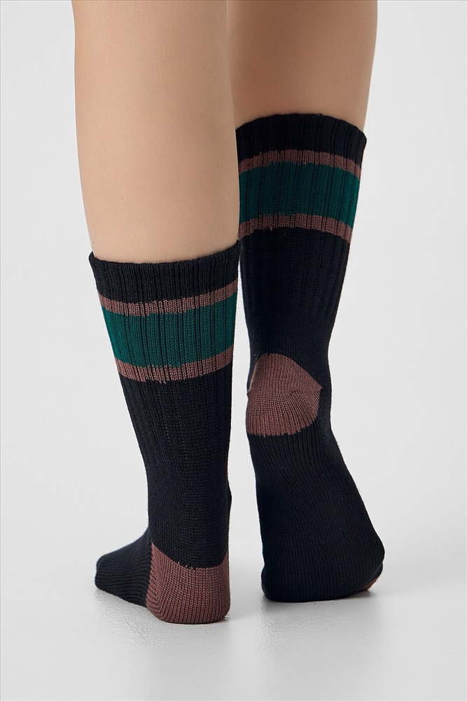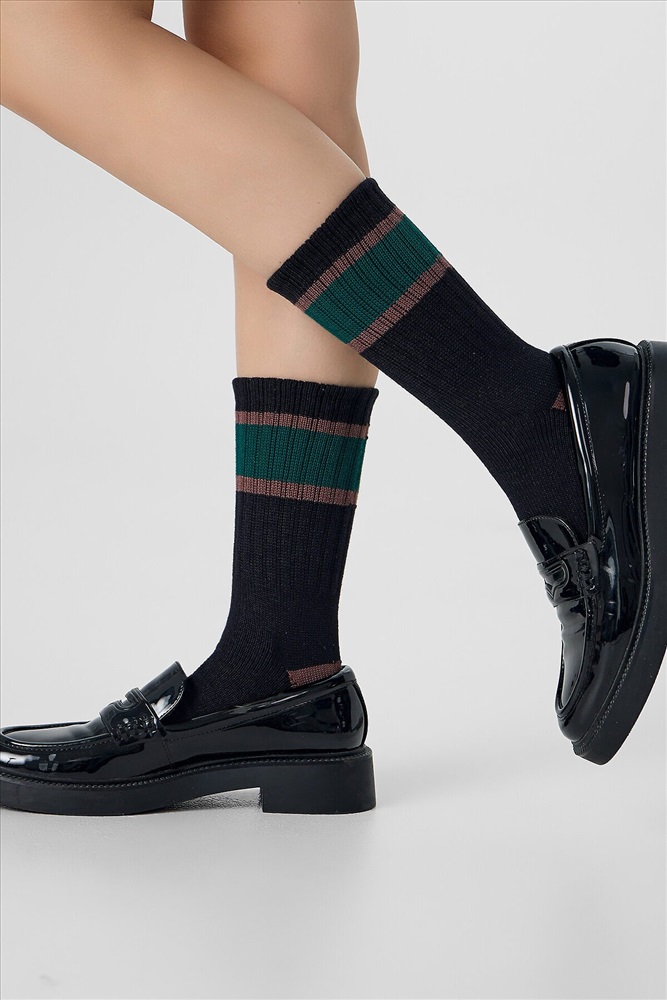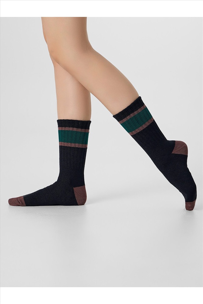 рис.3367 Женские классические носки с рисунком в виде полосок из смешанной пряжи с содержанием шерсти.