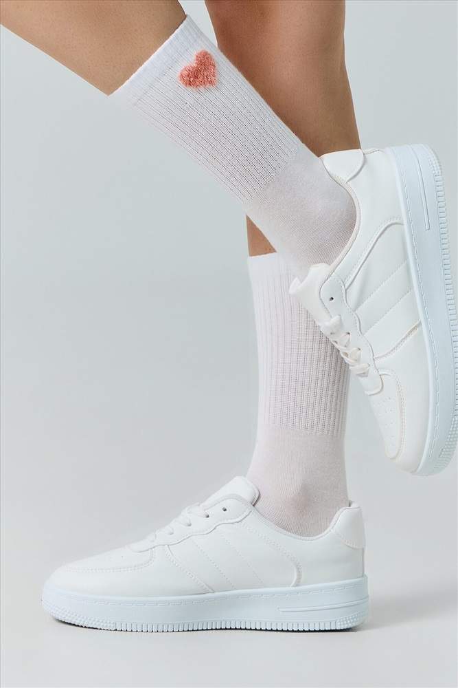 ID товара: 1232839 Состав: 65% хлопок; 30% ПА; 5% эластан Сезон: Весна/Лето Вид носков/гольф: Фантазийные Страна бренда: Беларусь Страна производства: Китай рис.2870 Женский носок с высоким плотным бортом и рисунком в пушистого сердечка Комментарии к товару