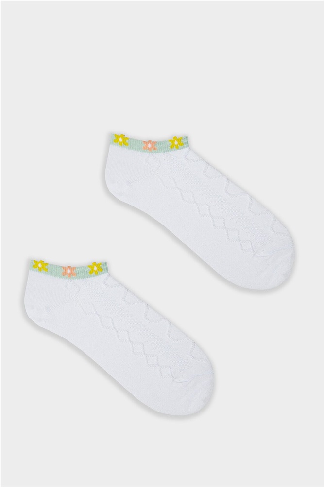 рис.3154 Женские укороченные носки, выработанные перекидным переплетением с рельефным рисунком и пикотом на бортике в виде ромашек.