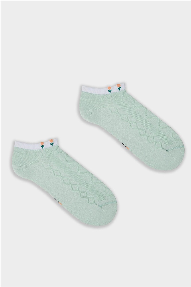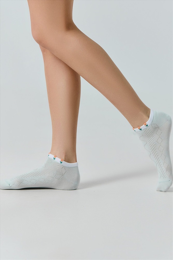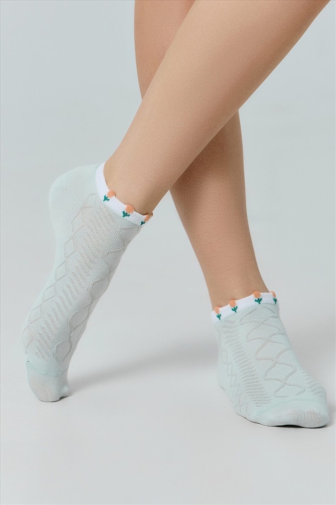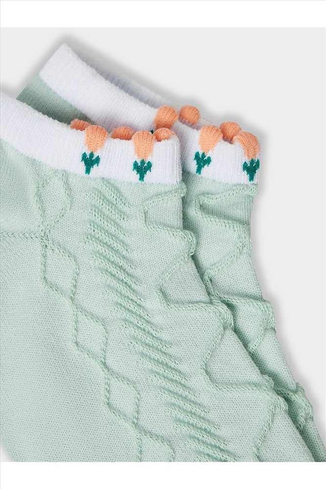 ID товара: 1232843 Состав: 75% хлопок; 23% ПА; 2% эластан Сезон: Весна/Лето Вид носков/гольф: Укороченные Страна бренда: Беларусь Страна производства: Китай рис.3155 Женские укороченные носки, выработанные перекидным переплетением с рельефным рисунком и пикотом на бортике в виде тюльпанчиков. Комментарии к товару