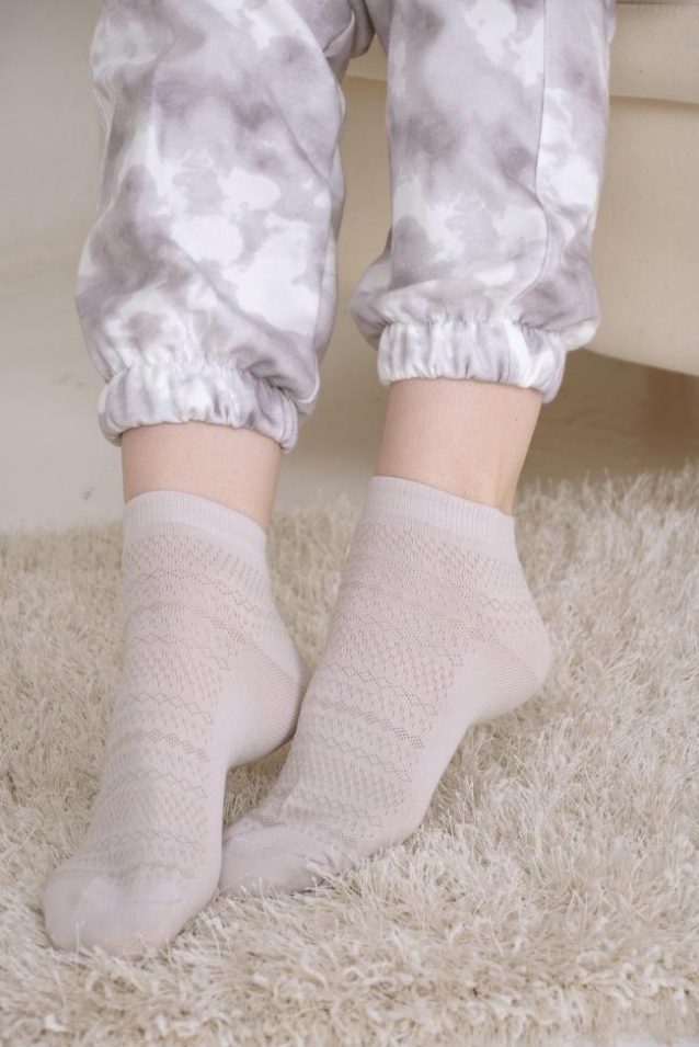 Ажурные женские носочки в спокойных оттенках - бежевом и белом. На резинке, по верху ажурный рисунок, по стопе - гладкие. В упаковке 2 пары одного цвета.
