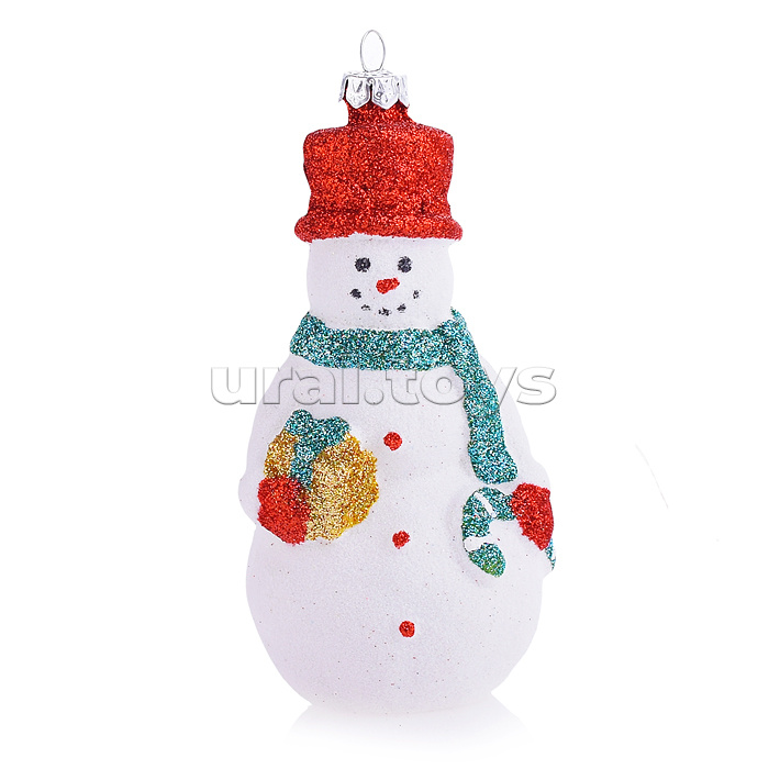 Новогоднее подвесное украшение Снеговик с подарком из пластика (полистирол)