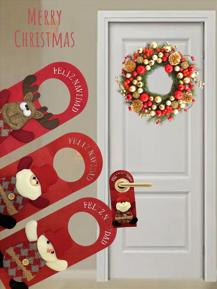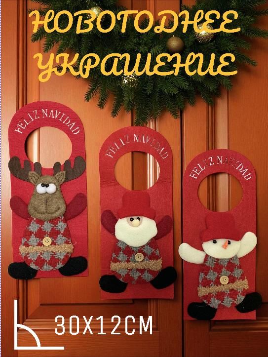 Вес уп.(гр) ~: 22 Новогоднее украшене, большая дверная подвеска 30см Материал войлок