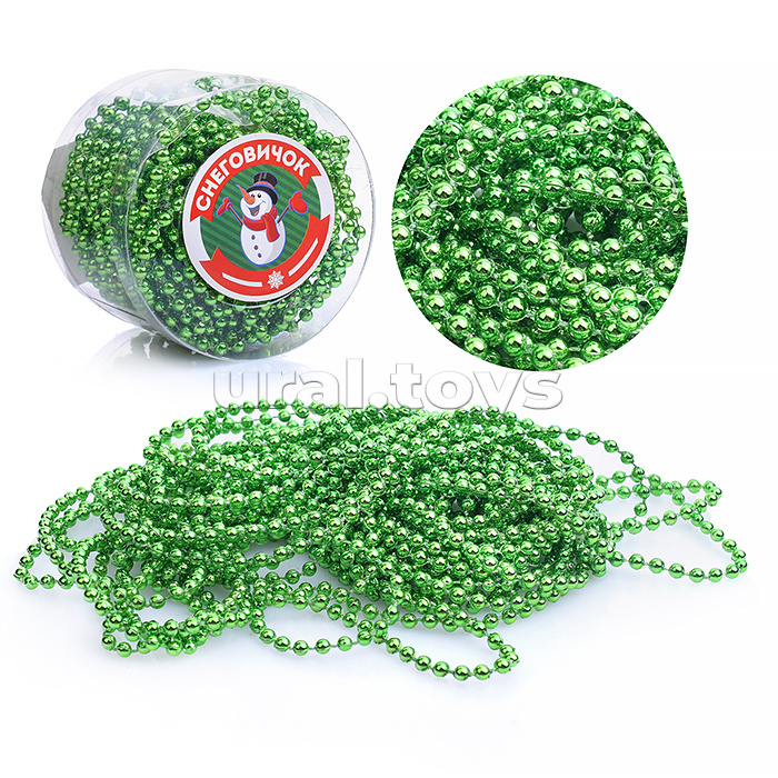 Новогоднее украшение "Бусы" зеленые, 10м, в банке