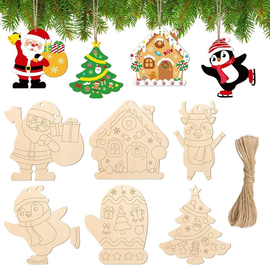 Украсьте вашу елочку яркими елочными игрушками, которые не только добавят праздничного настроения, но и позволят вам проявить творческий подход. Подходят для росписи фломастерами, гуашью, акриловыми, темперными красками, карандашами. При занятии росписью развиваются: творческие способности, мелкая моторика рук, зрительная концентрация, мышление, а также внимательность, аккуратность и усидчивость. В комплект входят: 6 деревянных новогодних фигурок, а также 6 веревочек для подвешивания. Комментарии к товару
