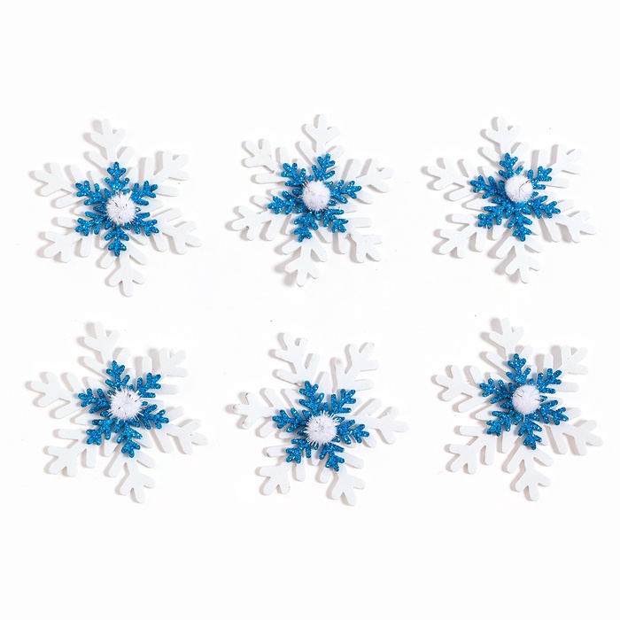 Новый год — самый волшебный праздник в году, и в этот день всё должно быть таким же сказочным и чудесным, особенно декор. В наборе 6 снежинок диаметром 6 см.