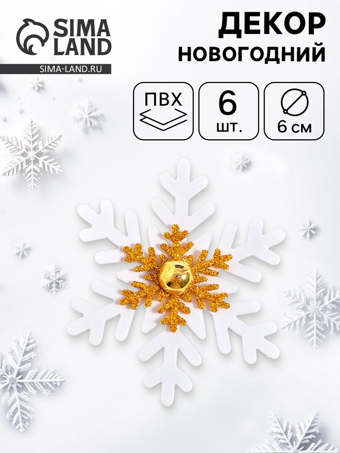 Габариты: 19 x 10 x 1,5 Страна: Россия В боксе: 200 набор В наборе: 6 набор Состав: ПВХ Материалы: ПВХ Фасовка: по 1 набор Индивидуальная упаковка: Пакет (БОПП, полиэтилен, ПВХ, дой-пак) Сертификат: Не подлежит сертификации Набор: Да Цвет: Золотистый, Белый Высота, см: 6,5 Символ года: Нет Тематика праздника: Новый год Материал: ПВХ Новый год — самый волшебный праздник в году, и в этот день всё должно быть таким же сказочным и чудесным, особенно декор. В наборе 6 белых снежинок с золотистыми элементами диаметром 6,5 см. Как прикрепить декор