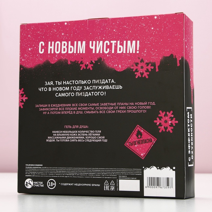 Габариты: 4,5 x 21,2 x 21 Страна: Россия В боксе: 23 набор Состав: См. на упаковке Материалы: см. на упаковке Фасовка: по 1 набор Индивидуальная упаковка: Полиэтиленовая пленка Сертификат: ЕАС Набор: Да Цвет: Разноцветный Для кого: Для женщины В наборе, шт.: 2 Вес, г/Объём, мл: 250 Объём, мл: 250 Тематика: 18+, Новогодняя Вид упаковки: Подарочная коробка Символ года: Нет Тематика праздника: Новый год Адресат: Без адресата Возраст: Взрослый Область применения: Для тела Аромат: Сладкая жвачка Составляющие набора: Ежедневник, Гель для душа Темпер. ограничение НЕ НИЖЕ ℃: +5 Темпер. ограничение НЕ ВЫШЕ ℃: +25 Возраст: Для взрослых Возраст: От 18 лет Назначение: Очищение, детокс Форма выпуска: Флакон без дозатора Фиксированная цена: Да Комментарии к товару