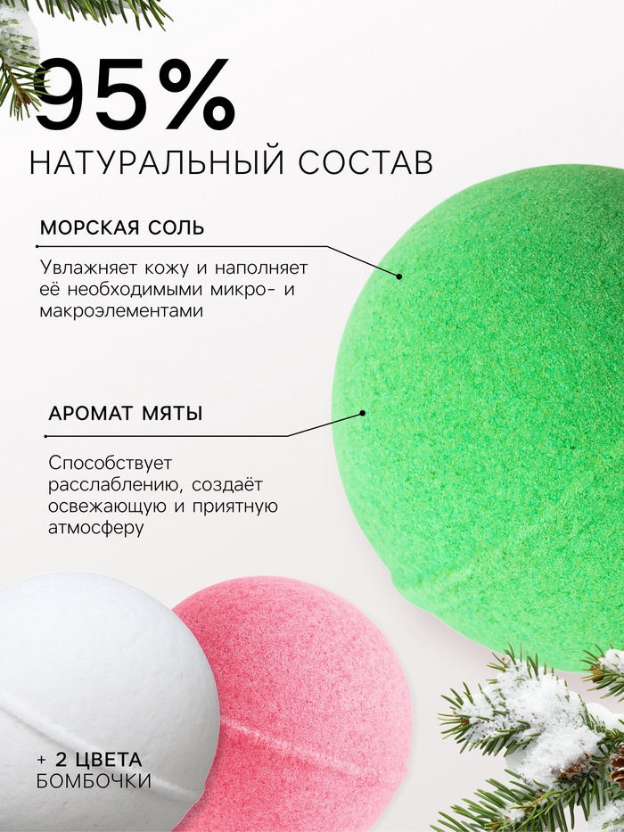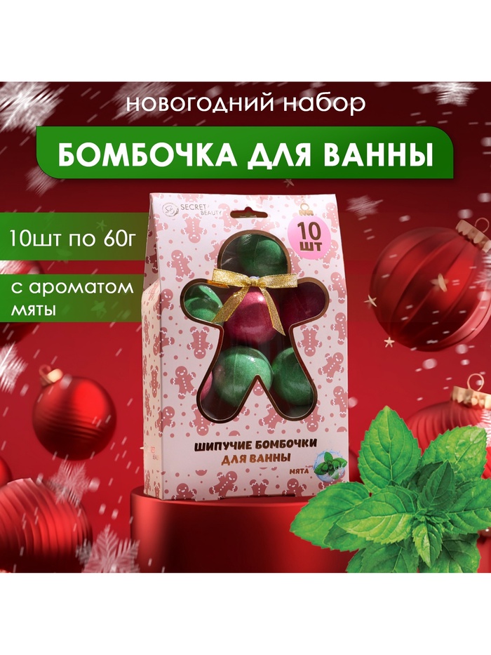 Набор бомбочек для ванны «Новогодний», красный, зелёный, белый, 10 шт по 60 гр. - это идеальное дополнение для создания волшебной атмосферы во время праздничного сезона.
