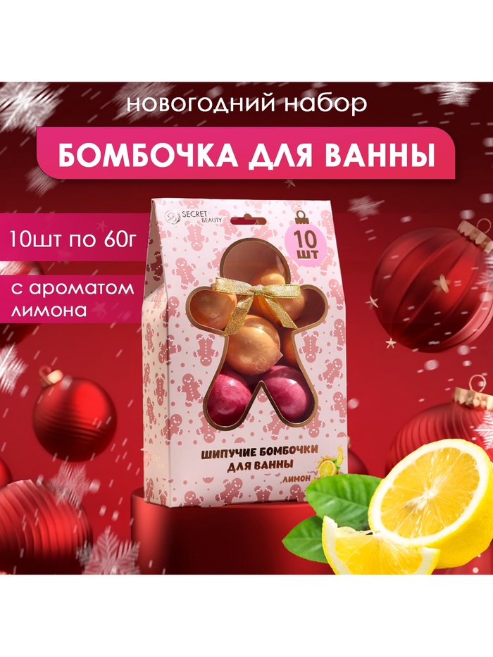 Набор бомбочек для ванны «Новогодний», золотой, красный, 10 шт по 60 гр. - это идеальное дополнение для создания волшебной атмосферы во время праздничного сезона.