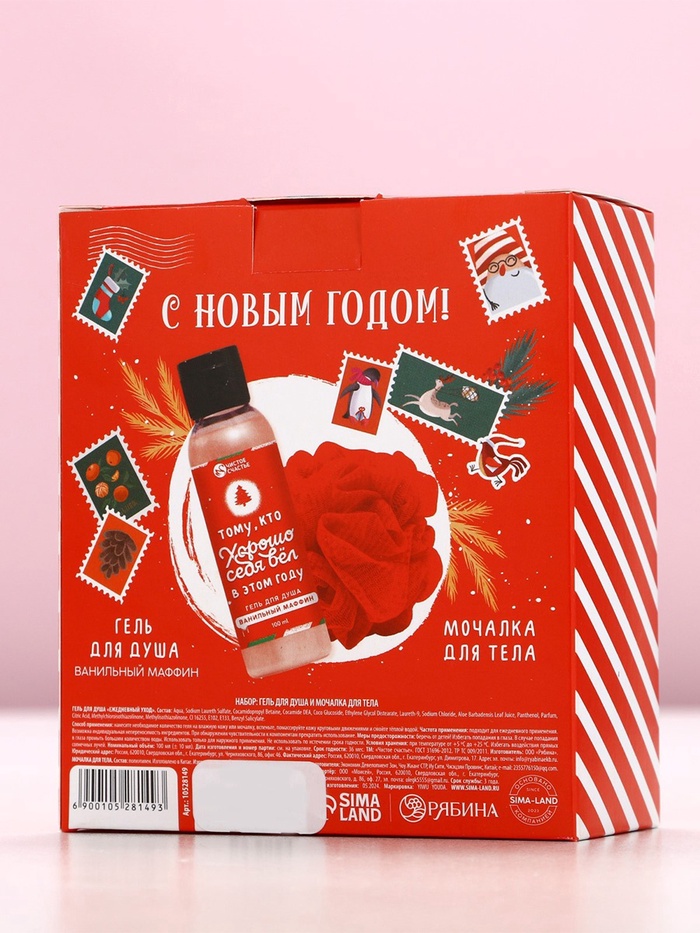 Производитель: Чистое счастье Габариты: 5,5 x 11,5 x 13 Страна: Россия В боксе: 105 набор Состав: См. на упаковке Материалы: см. на упаковке Фасовка: по 1 набор Индивидуальная упаковка: Стрейч-пленка Сертификат: ЕАС Набор: Да Цвет: Золотистый Для кого: Для женщины В наборе, шт.: 2 Объём, мл: 100 Вид упаковки: Подарочная коробка Символ года: Нет Тематика праздника: Новый год Адресат: Без адресата Возраст: Взрослый Аромат: Ванильный маффин Составляющие набора: Гель для душа, Мочалка Темпер. ограничение НЕ НИЖЕ ℃: +5 Темпер. ограничение НЕ ВЫШЕ ℃: +25 Возраст: Для взрослых Назначение: Очищение, детокс Форма выпуска: Флакон без дозатора Фиксированная цена: Да
