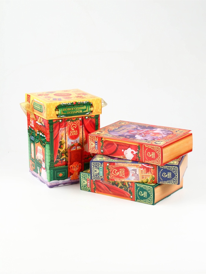 Габариты: 24,5 x 18 x 17 Страна: Россия В боксе: 8 шт Фасовка: по 1 шт Индивидуальная упаковка: Картонная коробка / упаковка Сертификат: ЕАС Для кого: Для мальчика, Для девочки В наборе, шт.: 16 Вес нетто, г: 300 Вид упаковки: Подарочная коробка Тематика праздника: Новый год Адресат: Без адресата Возраст: Детский Составляющие набора: Блокнот, Мармелад, Печенье с предсказанием, Карамель на палочке, Бомбочка для ванн, Аудиокнига, Конфеты, Шоколад Форма: Батончик, Плитка Возраст: Для детей Вид шоколада: Молочный Детский подарочный набор в виде книги: сюрприз на каждой странице! Представьте восторг ребёнка, который открывает книгу, а внутри — целый мир чудес и вкусностей! Этот необычный подарочный набор выполнен в форме книги, превращая вручение подарка в маленькое приключение. Что внутри: •Конфеты с корпусами на карамельной основе глазированные мини арахис «Yarche!» •Жевательный мармелад: ассорти вкусов с витаминами •Карамель с ореховой начинкой «Жевательная ириска Нота Бум» •Мучное кондитерское изделие глазированное «Tondi Choco Pie» •Молочный шоколад BABYFOX c молочной начинкой •Конфеты с карамелью, арахисом и криспи «ДаЁжъ! Wafer bar» •Конфеты «35» с морской солью и кранчами со вкусом карамели •Конфеты «35» со сливочной начинкой •Конфеты глазированные с корпусами типа пралине «Самый умный на сливочках» •Шоколад молочный •Бомбочка для ванны •Печенье песочное с предсказанием. •Блокнот, А5, 48 листов •Аудиокнига — увлекательная сказка, которую можно слушать вместо чтения.•Изделия художественно-декоративные и сувенирные из дерева. •Карандаши восковые в картонной коробке Calligrata, 6 цветов. •Карамель леденцовая фигурная на палочке Подарите ребёнку целую историю впечатлений — откройте вместе с ним волшебную книгу радости и чудес! Комментарии к товару