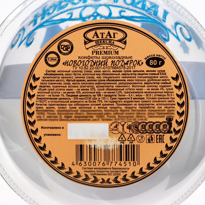 Габариты: 12,5 x 11 x 11 Страна: Россия В боксе: 6 шт Состав: См. на упаковке Материалы: см. на упаковке Фасовка: по 1 шт Индивидуальная упаковка: Без упаковки Сертификат: ЕАС Вес нетто, г: 80 Тематика: Новогодняя Вид упаковки: Пластиковая упаковка Символ года: Нет Тематика праздника: Рождество, Новый год Вкус: Арахис Вид: Шоколадные Фиксированная цена: Да Новогодние шоколадные конфеты "Новогодний подарок!" — это праздничное угощение, созданное для того, чтобы украсить зимние праздники и подарить сладкие мгновения радости. Упакованные в стильную упаковку в форме ёлочного шарика, эти конфеты станут не только вкусным угощением, но и ярким декоративным элементом на вашей ёлке. Внутри шарика скрываются изысканные шоколадные конфеты, выполненные с вниманием к качеству и деталям. Богатый вкус шоколада и праздничное оформление создают неповторимую атмосферу, которая ассоциируется с теплом, уютом и ожиданием чуда. Такая упаковка превращает конфеты в идеальный новогодний и рождественский подарок. Шарик-украшение можно повесить на ёлку или использовать в качестве стильного дополнения к праздничному декору. Конфеты "Новогодний подарок!" прекрасно подойдут для того, чтобы порадовать друзей, коллег или близких, передав им свои искренние пожелания счастья и благополучия в новом году. Этот набор станет символом праздника, который принесет сладкие и приятные воспоминания на весь год вперед. Комментарии к товару
