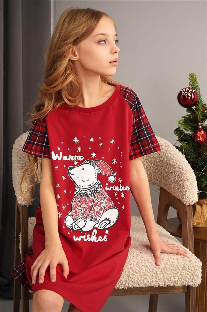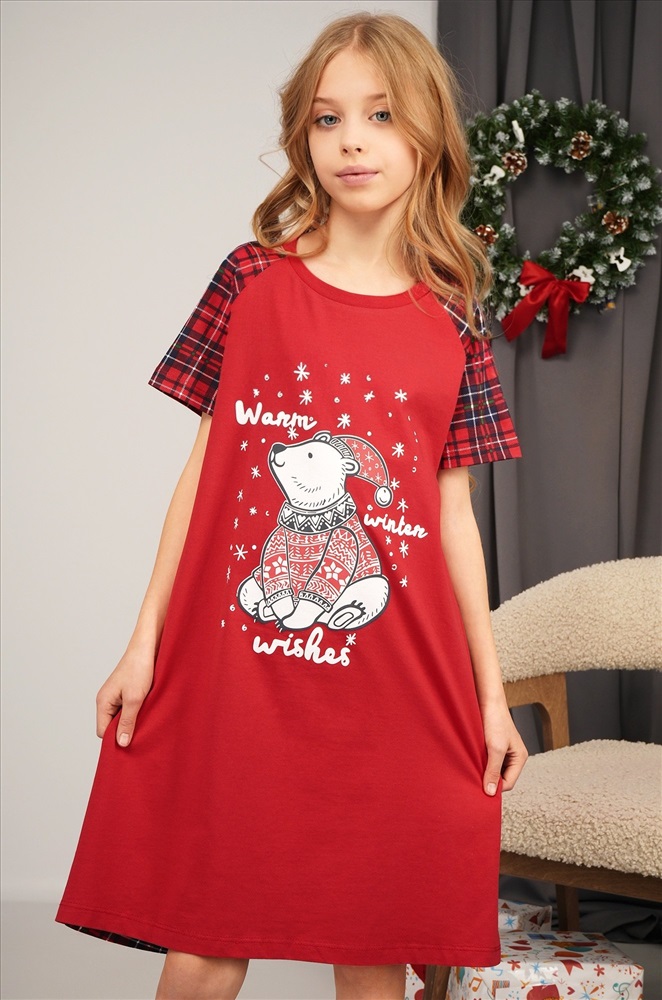Детская новогодняя сорочка для девочки создана для праздничного настроения и комфортного отдыха во время зимних каникул.