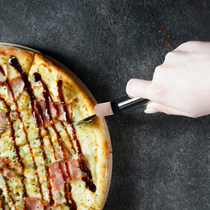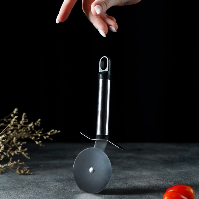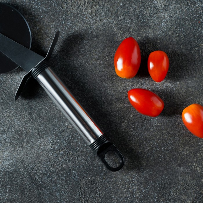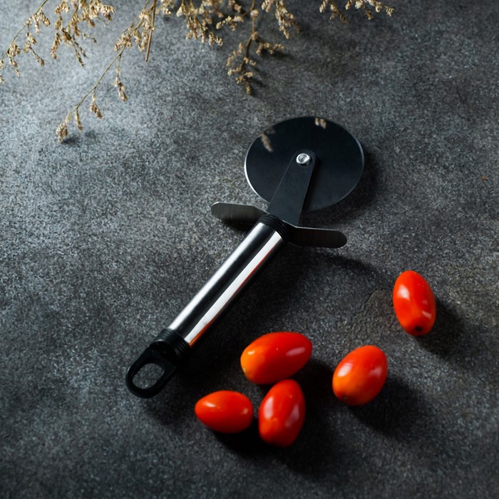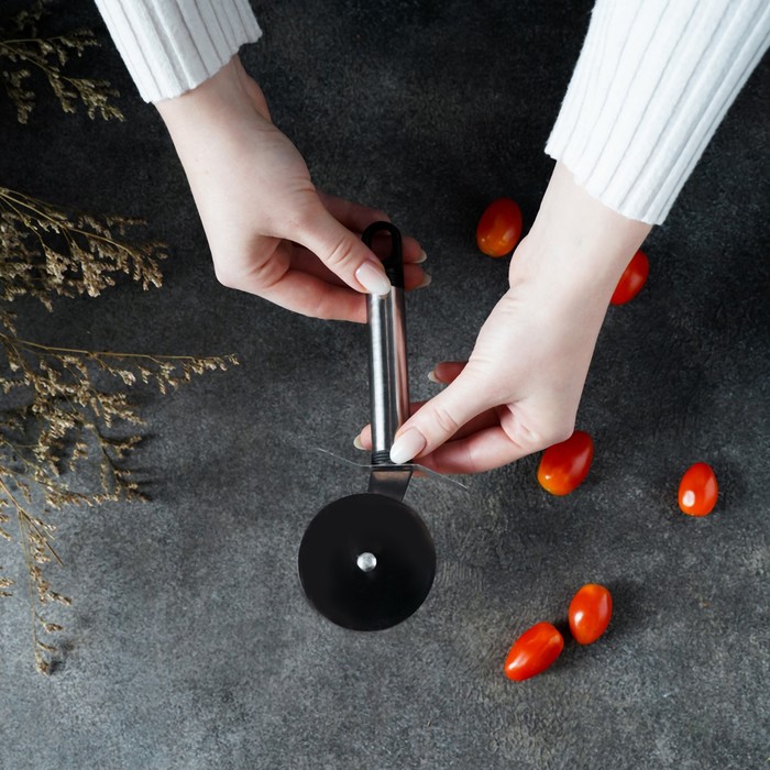 Нож для пиццы — универсальный кухонный инструмент, который не только легко разрезает готовую выпечку, но и помогает поделить на слайсы липкое тесто. Нож имеет эргономичную форму ручки и острое круглое лезвие. Колесо, прикреплённое к рукояти, продавливает продукт, а не разрезает его в отличие от классического ножа. Благодаря такому способу тесто разрезается, а начинка остается на месте.