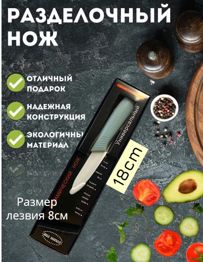 Вес уп.(гр) ~: 65 Нож керамический, кухонный, универсальный, ручка soft touch, 18см Нож керамический, очень острый