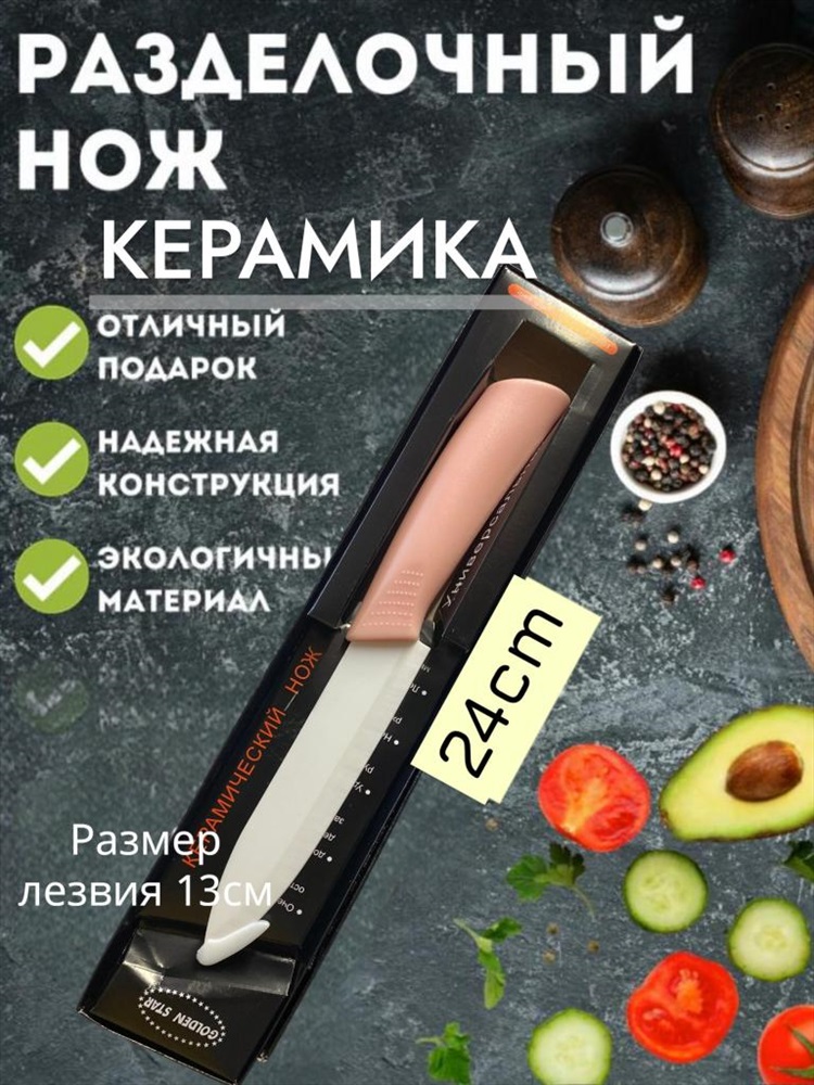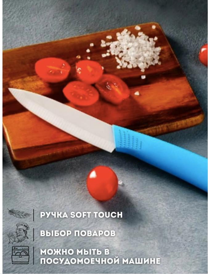 Вес уп.(гр) ~: 90 Нож керамический, кухонный, универсальный, ручка soft touch, 24см Нож керамический, очень острый