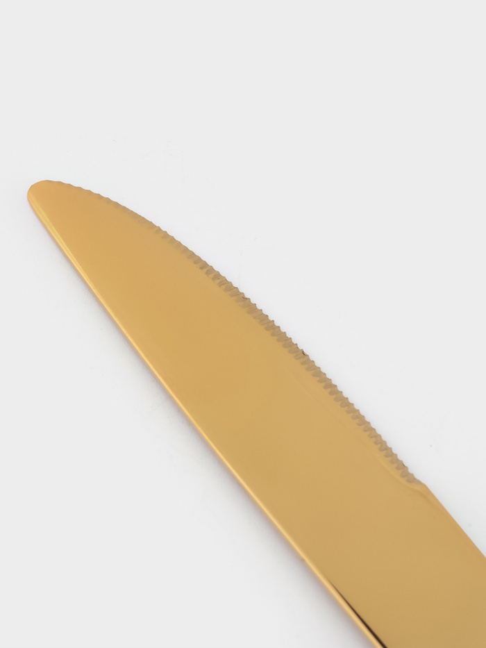 Нож столовый Magistro Kolos выполнен в золотистом цвете из нержавеющей стали.