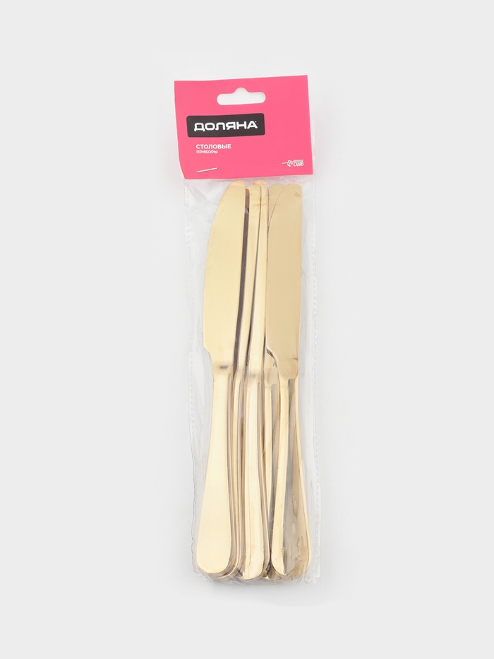 Габариты: 23 x 7,5 x 15 Страна: Китай В боксе: 90 набор В наборе: 6 набор Состав: Нержавеющая сталь Материалы: нержавеющая сталь Фасовка: по 1 набор Индивидуальная упаковка: Пакет Габариты товара: 22 см × 1,9 см × 0,3 см Сертификат: СТР Набор: Да Цвет: Золотистый Длина, см: 22 В наборе, шт.: 6 Материал ручки: Сталь Рисунок: Нет Материал: Нержавеющая сталь Назначение: Столовые Можно мыть в посудомоечной машине: Нет Можно использовать в СВЧ-печи: Нет Цвет ручки: Золотистый Матовая поверхность: Нет Внешний вид: Без особенностей Фиксированная цена: Да Набор столовых ножей Доляна «Голд» изготовлен из качественной коррозионностойкой стали. Приборы имеют современный минималистичный дизайн с четкими контурами и отсутствием декоративных элементов, поэтому их можно использовать для сервировки практически в любом стиле. Имеют удобные ручки, поэтому ими комфортно пользоваться. Не подходят для мытья в посудомоечной машине. КомплектацияНож столовый, 22 см - 6 шт. Комментарии к товару