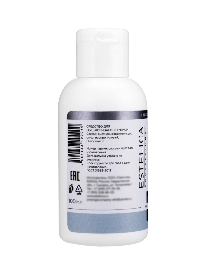 ESTELICA PROFESSIONAL OPTIMUM, средство для обезжиривания и снятия липкого слоя 100 мл — профессиональное гипоаллергенное средство, которое обеспечивает надёжное сцепление материалов с ногтевой пластиной и предотвращает сколы и отслоения покрытия. Средство эффективно удаляет дисперсионный (липкий) слой и дегидратирует ногтевую пластину, что делает его незаменимым при работе с натуральными и искусственными ногтями перед нанесением акрила, геля или лака.