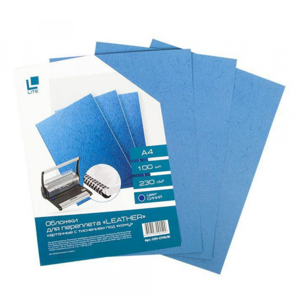 Наименование: Обложка для переплета А4 100 шт. 230 г/м2 синяя под кожу COV-LTHR/Bl LITE