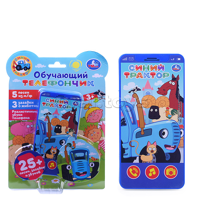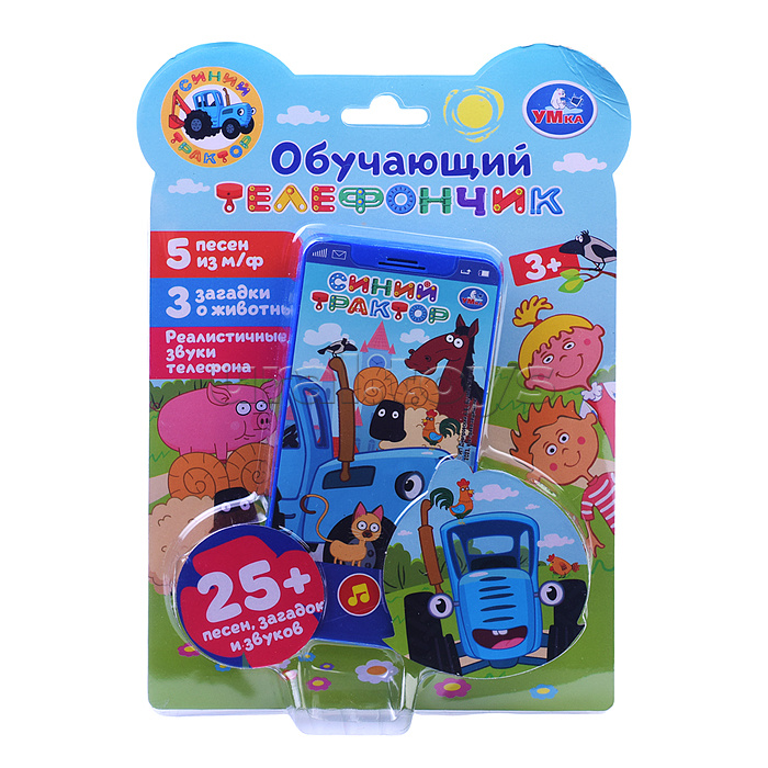 Код: 454233 Штрихкод: 4650250562405 Страна производитель: Китай Размеры упаковки: 23 x 17 x 2 см Количество в коробке: 60 • Размеры игрушки: 7х2х14 см. • Функции: - 5 песен из мультфильмов. - звуки телефона. - 3 загадки о животных. • Для работы нужны 3 батарейки "АА" (входят в комплект для демонстрации) • Материал: пластик. • Соответствует требованиям безопасности продукции. • Для детей от 3-х лет. Комментарии к товару