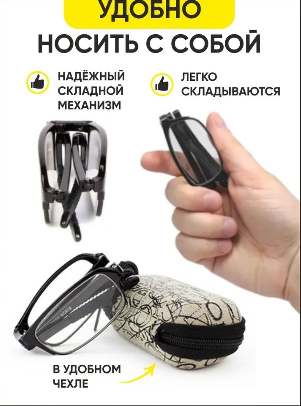 Вес уп.(гр) ~: 34 Очки складные для чтения ( +2,5) Прочитать мелкий текст в газете, на экране телефона или упаковке товара бывает очень сложно!