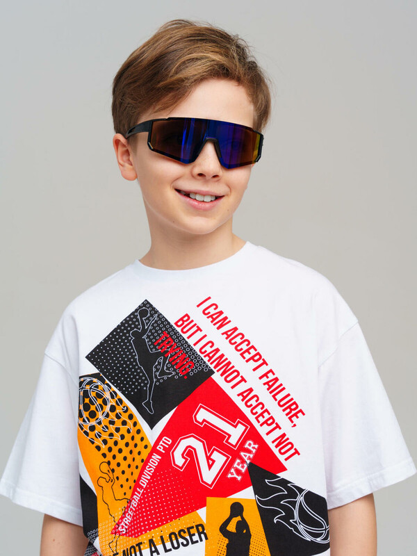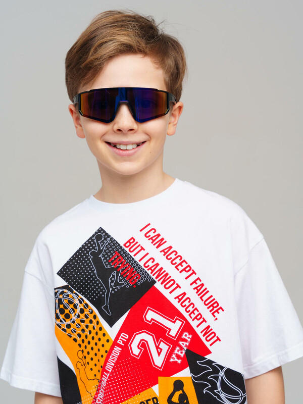 Солнцезащитные очки футуристической формы для мальчика подростка. Солнцезащитные очки с фильтром Cat3. Ширина оправы - 130 мм, длина дужки - 115 мм. Обхват головы 52-54 см. Тёмные фильтры блокируют 85% солнечных лучей такие очки эффективны для защиты глаз в тропиках, у моря и в горах. Очки транспортируются в картонной коробке. В комплект входит фирменный текстильный чехол из микрофибры, с помощью которого легко ухаживать за изделием.