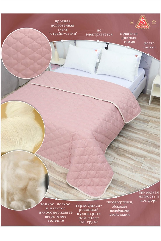 Одеяло Козий пух стёганное на многоигольной машине ,наполнитель натуральное пухосодержащее шерстяное термофиксированное волокно, обладающее целебными свойствами, оказывает оздоровительное воздействие на организм. Гипоаллергенное, состоящее из белкосодержащих соединений, тонкое извилистое лёгкое волокно животного происхождения, долгого срока службы в обиходе.