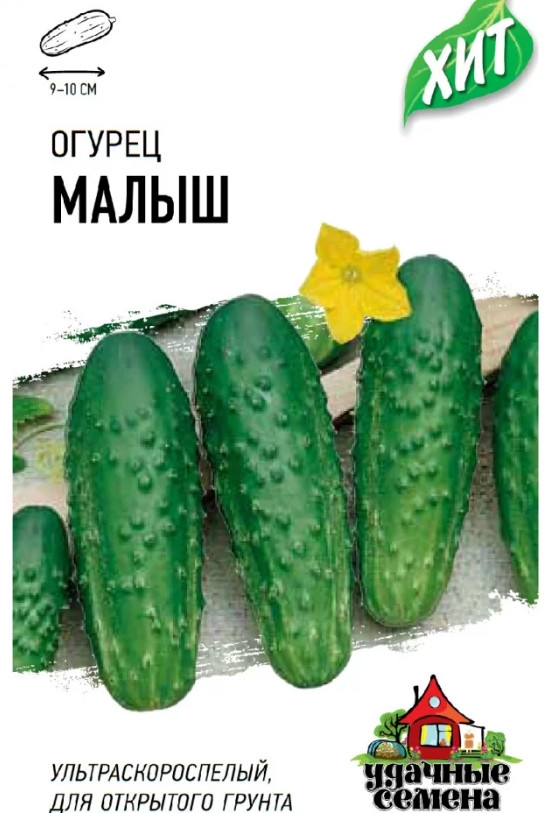 Ультраскороспелый (41-43 дня от полных всходов до вступления в плодоношение) пчелоопыляемый сорт открытого грунта. Растение кустовое, компактное (плеть длиной 40 см), слабоветвистое. В пазухе листа закладывается до 6 завязей. Зеленец с крупными, редкими бугорками, длиной 9-10 см, массой 80-115 г. Отличается дружной отдачей урожая, отличным вкусом, используется в свежем виде и для консервирования. Урожайность 1,3-2,6 кг/м2. Комментарии к товару