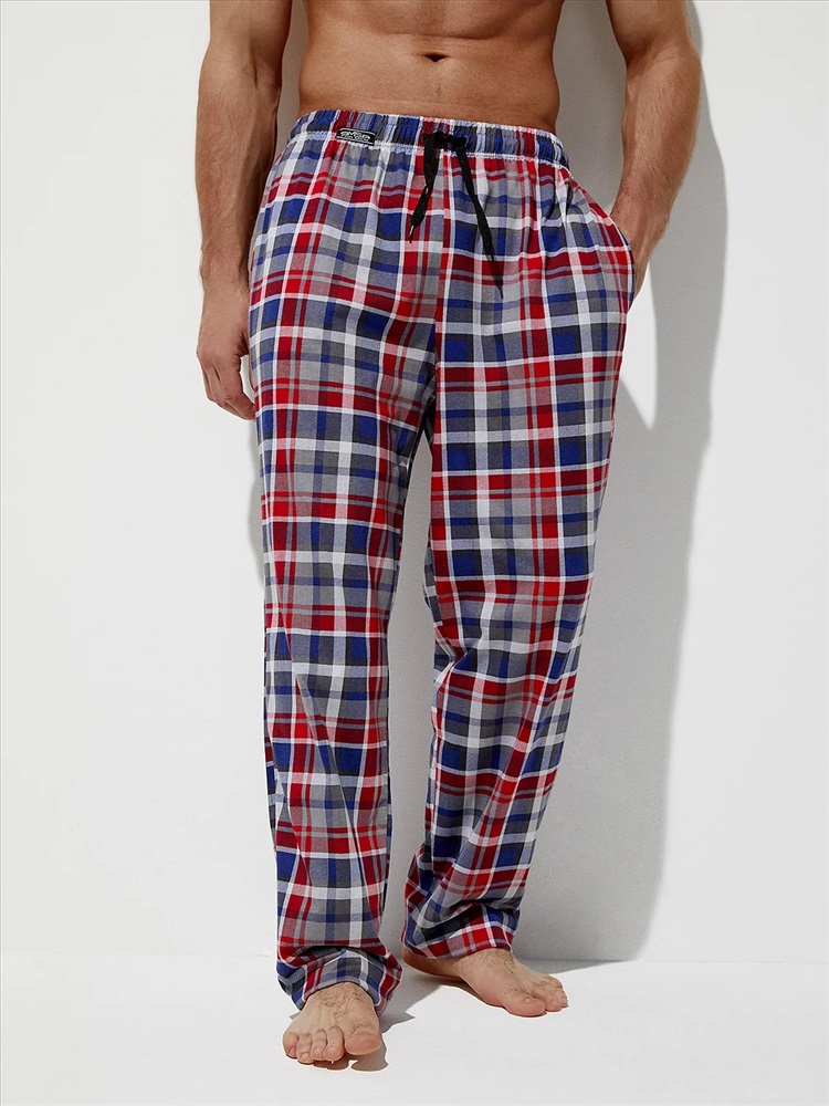 Мужские классические домашние брюки в лаконичную клетку, с карманами.