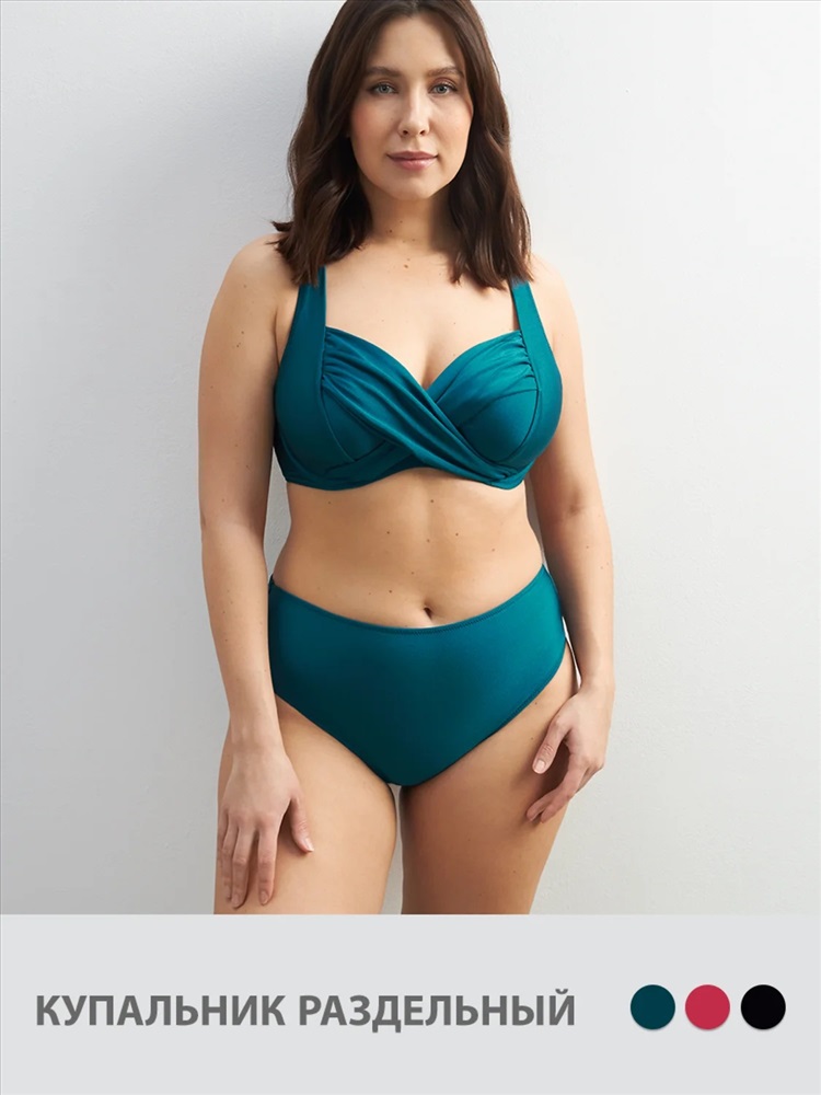 Раздельный однотонный купальник из блестящей микрофибры. Материал быстро высыхает, приятно ощущается на теле, устойчив к воздействию хлора и ультрафиолета. Полностью на подкладке, не просвечивает.